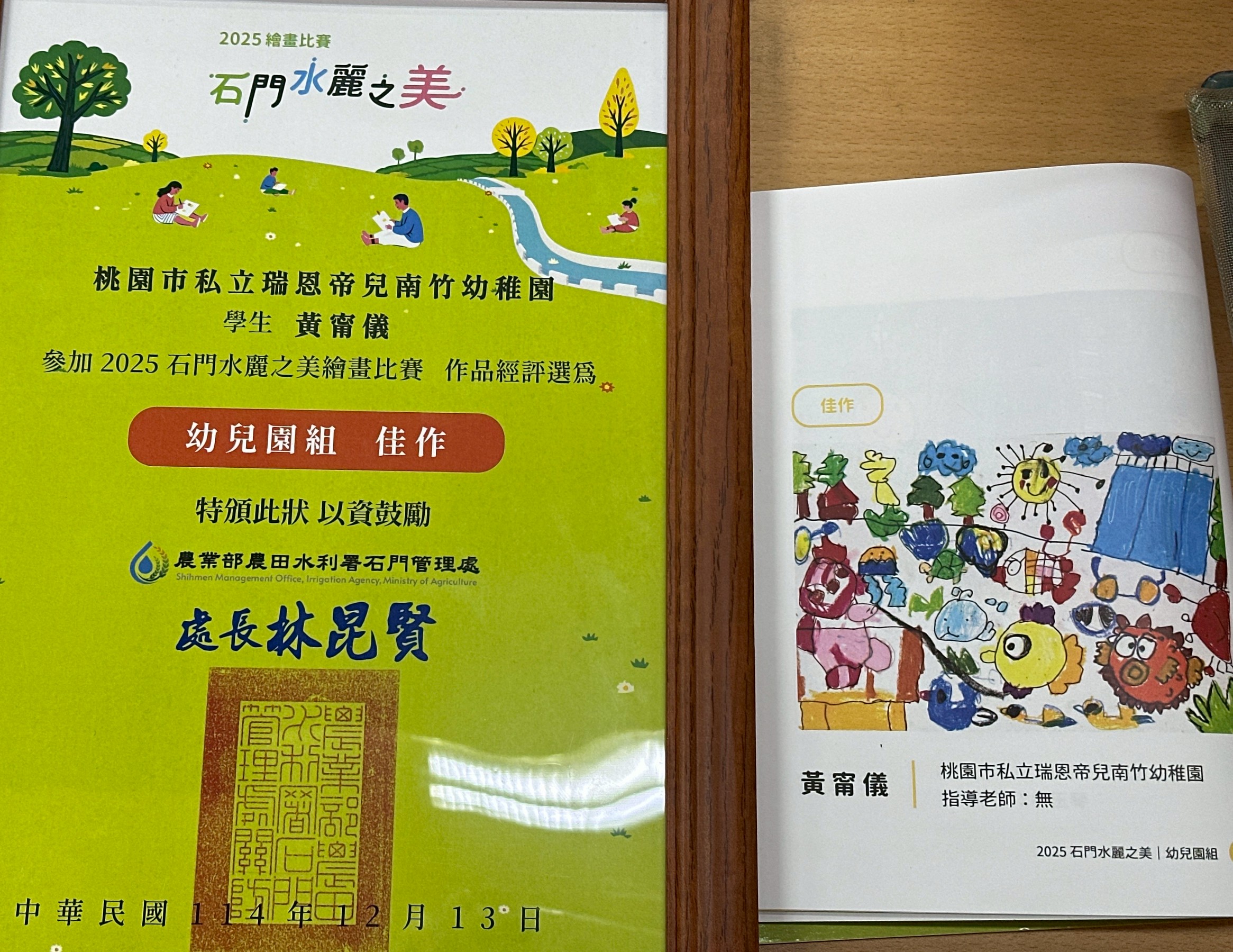 賀~本園黃甯儀小朋友參加2025石門水麗之美繪畫比賽榮獲佳作